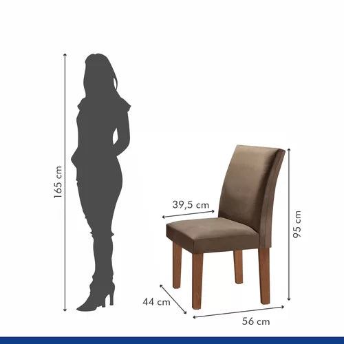 Conjunto Sala de Jantar Mesa Tampo de Vidro 6 Cadeiras Espanha Yescasa Chocolate/Off White/Animale Marrom